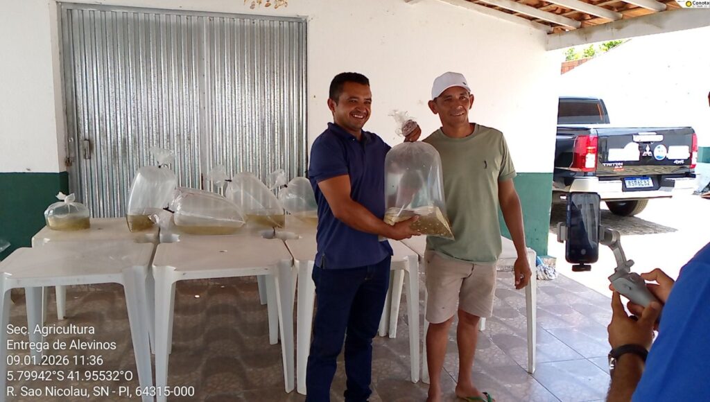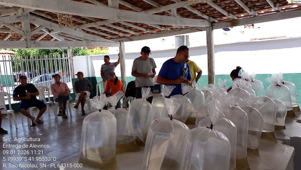 A Prefeitura de Santa Cruz dos Milagres reafirmou seu compromisso com o desenvolvimento rural e a segurança alimentar ao realizar, no último dia 08 de janeiro, a distribuição de 20 mil alevinos para piscicultores do município. A ação foi viabilizada por meio de uma parceria estratégica entre a Secretaria Municipal de Agricultura e a Secretaria de Estado da Agricultura Familiar (SAF-PI), focando no fortalecimento da cadeia produtiva de pescado na região.