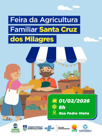A Prefeitura Municipal de Santa Cruz dos Milagres realiza, no próximo dia 01 de fevereiro, a Feira da Agricultura Familiar, uma importante iniciativa voltada à valorização do produtor rural e ao fortalecimento da economia local.