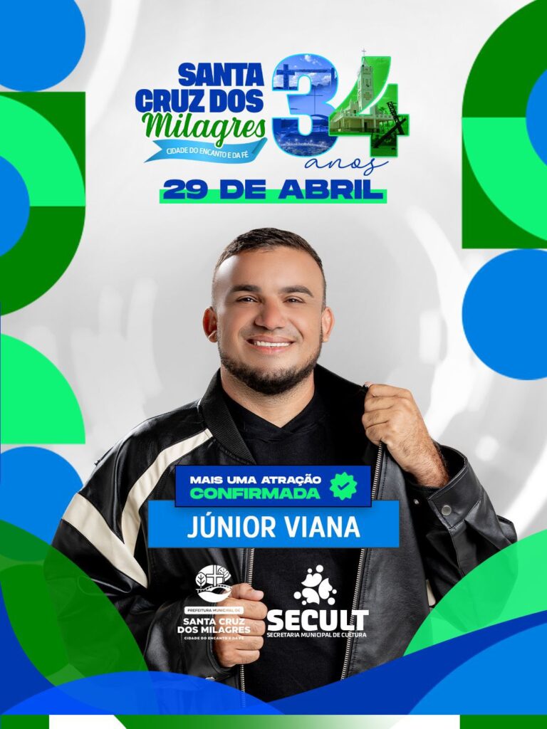 E a programação já está imperdível! Além de Júnior Viana, também já está confirmado o show de Pedin e Edivan, abrindo as comemorações no dia 29 de abril.